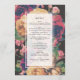 Esta é uma placa de rack ou um menu de recepção de casamento. Antigos rosas coloridos com um fundo escuro para um maravilhoso casamento teórico da boêmia. Flores de estilo Vintage. Rosas vermelhas e rosa. Casamento de na moda Boho. Um design formal elegante em florais para o seu cardápio de casamento para um casamento inspirado em boho. Rosas coloridas antigas abaixo dão vida ao seu menu. Estes menus para felicitar a Suíte de Casamento de Fetos Botânicos com Rosa Escuro ou ser uma parte separada de qualquer característica de casamento.