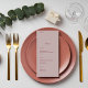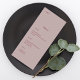 O Elegante Rosa de poeira minimalista e o Menu de Casamento de Rosa de Canela com suas iniciais.