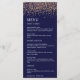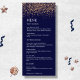 Elementos: folha de ouro rosa real, fontes serif clássicas, design de poeira estelar. Cores: marinho azul, rosa, branco. Temas: romântica, cerimônia noturna, moderna, caprichosa, luxuosa, glam, estrelas, astronomia, elegante, sofisticada. Coleção: Rosa Romântico de Marinho Dourado de Stardust Tipo de Produto: Menu