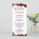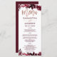 Rosa dourado Carimbo floral, cardápio de casamento vermelho-burgundy com folhagem de cor vermelha pintada manualmente. O fundo de cor branca é totalmente personalizável.