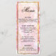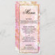 Um bonito menu de recepção de casamento floral cor-de-rosa que pode ser facilmente alterado para incluir os seus próprios detalhes. O design consiste num adorável padrão aquoso de rosas cor-de-rosa em volta das bordas e no verso. Todos os detalhes do texto na parte frontal são colocados em uma caixa com um quadro dourado ao seu redor.