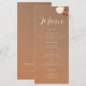 Um rosa, eucalipto e folhas verdes, desenhadas à mão em lápis colorido e em camadas com tons de rosa-púlpia, castanho-rosa-rosa-rosa-siena e laranja-abóbora, fazem um cardápio moderno, sofisticado, elegante e chique que, contra o fundo do terracota, é perfeito para um casamento outono. A elegante caligrafia faz este na moda floral design de casamento festivo e feminino.