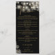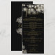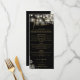 Este menu de casamento gótico com rosas pretas e douradas e luzes de corda pode ser personalizado com suas informações em tipografia sofisticada com suas iniciais monogramadas no verso. Projetado por Thisisnotme©