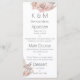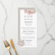 Este menu elegante e romântico apresenta um design floral. Rosas rosa e folhas florais boho acentuam os cantos superior direito e inferior esquerdo. Você pode substituir os itens do menu com as opções de comida de sua escolha. É adequado para um evento de café da manhã, brunch, almoço ou jantar, ou para um casamento ou banquete.