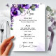 "Delicie seus convidados com nosso menu de casamento lindamente projetado, apresentando elegantes acentos florais roxos e prateados sobre um requintado fundo de marfim. Uma combinação perfeita de sofisticação e estilo para o seu dia especial."