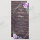 Este design apresenta peões elegantes e rosa-buds em tons de roxo, lavanda e violeta juntamente com a vegetação tradicional de folhagem de eucalipto e uma falsa borda geométrica de folha de prata circundando seus detalhes do menu de janta de recepção de casamento em um fundo de madeira falsa. Todo texto é facilmente personalizado usando os campos modelo fornecidos. Veja a coleção que acompanha os produtos complementares do pacote de casamento. Se você tiver uma pergunta sobre design ou quiser ver este design em outro produto, por favor, sinta-se à vontade para entrar em contato comigo em jschmidtdesignworks@gmail.com. Design © Judith Schmidt.
