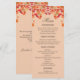 Celebre seu dia especial com o calor e a beleza do outono com este Cartaz personalizado do Menu Queda no Amor. Esta elegante design apresenta um arranjo botânico rústico de folhas mornas de laranja, castanho e ouro amarelas, entrelaçadas com amoras rubis vermelhas e lúcidas. Colocado contra um fundo laranja macio, este cartão captura a essência de um casamento no outono, misturando o charme do país com a elegância moderna. O cardápio é belamente mostrado numa combinação de tipografia mocha moderna e roteiro de caligrafia, acrescentando um toque refinado à celebração do seu casamento outono. Perfeito para um casamento no outono, este cartão de menu traz apelo rústico e sofisticada graça para a sua mesa.
