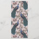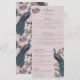 Este elegante menu de casamento completo de marfim apresenta ilustrações desenhadas à mão do estilo "Chinoiserie" de um pavão azul e teal cercado por Magnolia greenery, mostrando creme vibrante e flores de magnólia rosa pinceladas, todas sobre um elegante fundo rosa-pincelado. O verso apresenta um elegante padrão floral e de pássaros com ilustrações coordenadas. Todo texto é editável. Personalize com seus detalhes de casamento, incluindo nomes de noiva e noivo, aperitivo, curso principal, mesa de sobremesa e bebidas.