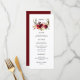 Rustic Burgundy Antlers Simple 3, menu de casamento Simple, apresenta um arranjo floral de cor-d-água, com salada, entrada e modelo de sobremesa. Há também espaço para os nomes da noiva e do noivo e a data do casamento. Consulte a coleção para itens correspondentes.
