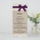Este cardápio de casamento personalizado é a combinação perfeita do tradicional com a moda. O fundo de burlap-look é perfeito para um casamento temático rústico ou vintage e o sotaque de renda adiciona um toque romântico clássico. Coordena-se com a coleção de cheios de Convites PLUM correspondentes, Salve as Datas, as placas RSVP, a postagem personalizada e muito mais! Envie-me um e-mail para cores personalizadas! NOTA - Esta é uma imagem de alta qualidade de burlap, lace, & ribbon; este convite não contém burlap, lace ou fita real. Obrigados!