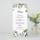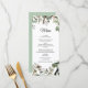 Um belo design de cardápio com folhas de eucalipto rústicas, verde-safra e aves. Um design elegante ideal para qualquer tema de casamento. O reverso do cartão mostra um monograma minimalista. Os convites de casamento e outros artigos de papelaria também estão disponíveis.