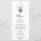 Esta design apresenta uma flor rústica de proteína Rei rosa. A flor da proteína Rei com suas folhas verdes é elegantemente emoldurada com uma estrutura de cor de diamante dourado. A flor do Rei Protea e seu verde criam um arbusto floral rústico. Design de cardápio de casamento russo com elementos modernos elegantes. Os convites de casamento e outros artigos de papelaria também estão disponíveis.