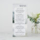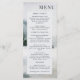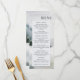 Elementos: pintura a aquarela de lago de montanha rústico no inverno; fontes elegantes serif e sans serif. Cores: azul, verde, cinza, branco, esbranquiçado. Temas: montanhas, lagos, casamento ao ar livre, casamento no inverno, elegante, rústico, impressionista, aquarela, montanhas de neve. Coleção: Coleção de Casamentos de Aquarelas Rustic Mountain Lake Watercolor. Tipo de produto: Menu