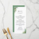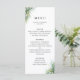 Folhas de palma de aquarela rustica, cartão de menu. Modelo oferece espaço para nomes, data e três títulos de menu com descrições. A cor de apoio mostrada em verde-sábio de coordenação pode ser personalizada.