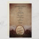 Personalize o encantador Menu de Casamento Rustic Pines Woods com os detalhes da refeição que você servirá no seu janto de ensaio de casamento ou almoço de chá de panela, adicionando a salada ou primeiro curso, entrada ou segundo curso e sobremesa ou terceiro curso. Personalize-o com os nomes da noiva e do noivo, localização do local e data do evento. Esta floresta ou cardápio de casamento da floresta apresenta uma fotografia em estilo natural de uma fatia de madeira com a palavra LOVE nela, dois pinheiros castanhos, galho de pinheiros verdes e véu de brasa branco com fundo de burlap. Inpo perfeito para o casal que planejou um tema casual, mas clássico, de casamento natural em florestas.