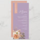Defina um tom romântico para sua recepção de casamento com este menu de casamento floral rústico com nomes personalizados de hóspedes. Projetado com um fundo roxo suave, um cabeçalho de script elegante e uma faixa de nome de pêssego vertical exclusiva, este menu adiciona um toque moderno, porém quente, à sua configuração de mesa. Os florais escidos, cor de pêssego, marfim e em tom de lavanda no fundo evocam o final do verão ou o início do outono — perfeito para chic rústico, jardim de vassoura ou casamentos rurais. O texto totalmente editável permite personalizar com facilidade cada curso e nome de convidado.