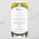 Este design apresenta flores de acácia-acácia-amarela rustica nativas da Austrália. A coroa australiana das flores amarelas marca a data do casamento. Os tons amarelos das flores da tartaruga e seu verde criam um arbusto floral rústico. Design de cardápio russo com elementos modernos. Os convites de casamento e outros artigos de papelaria também estão disponíveis.