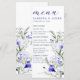O menu Royal Blue Ivory Floral Wedding é um cardápio elegantemente desenhado com trabalho de arte floral azul e marfim elegante no lado esquerdo. Personalize com seus detalhes de casamento e encontre designs correspondentes na minha loja "DreamHut".