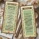 Incorpore elegância e tradição no seu cardápio de casamento com este cardápio de casamento verde. A design apresenta a exuberante e opulente arte barroca floral que abraça o grandioso, o luxo e o reverso combina com ela para complementar seu tema de casamento. A arte ilustra o adorno de ouro macio de delicados espirais florais de ouro. O texto do programa pode ser personalizado, permitindo que você inclua os detalhes. O lado inverso tem um tema correspondente e um obrigado que você envia para doação.