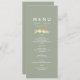 Elegant sage green wedding menu with a romantic faux gold lovebirds illustration and white minimalist typography. Perfect for spring, summer or fall receptions, this menu card complements a timeless and nature-inspired wedding theme. Fully editable with your starters, main course, and dessert. Matches the full gold lovebirds wedding suite.