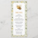 This sage green baby shower menu card features a cute bee surrounded by wildflowers on a soft natural background. The light and natural design makes it a perfect personalized table detail.
