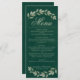 Este belo cardápio de casamento apresenta um design rústico com um fundo verde-esmeralda marmoreado, um título de caligrafia de guião e imagens de folhas verdes-aquáticas pintadas à mão no topo e no fundo. O texto é completamente personalizável com espaço para o nome do casal e a data do casamento na parte inferior. Elegante, na moda e chic, esta placa é uma forma excelente de adicionar classe e estilo à sua recepção de casamento enquanto deixa seus convidados saberem o que é para jantar!