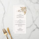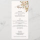 O romance de um casamento do outono é capturado neste elegante design com rosas aquáticas e verde em cores quentes de outono de terracota, marfim, ferrugem, castanha, azul empoeirado e verde-sábio com toques de dourado. Este design também apresenta gráficos de texto exclusivos em uma fonte de script de caligrafia personalizada com cor que pode ser personalizada no editor de design. Inclui campos de texto para itens de menu.