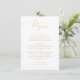 Mostre o menu de recepção em elegância de eterno com este cartão de cardápio de casamento formal. Apresentando um roteiro gracioso de aparência dourada em conjunto com fontes serif clássicas em um pano de fundo branco, ele exibe lindamente cursos em um layout limpo e sofisticado. O efeito de ouro impresso fornece o aspecto do brilho metálico - não é necessária nenhuma folha. Personalizável para corresponder aos detalhes da refeição. Este cartão é ideal para casamentos em escala superior, modernos ou minimalistas.