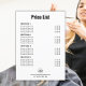 Crie o seu próprio sinal de lista de preços de produtos ou serviços personalizados com o nosso modelo de carregamento moderno e fácil de utilizar. Perfeito para sinalização de informações de listas de preços, seja você um vendedor de festivais, uma banca de comida de mercado, ou um tradicional compro de bistrô, bar, sanduíche ou café. Basta clicar em 'personalizar este design' para carregar seu produto/serviços, preços, logotipo da empresa e endereço Web ou número de contato. Cada seção pode ser removida e você pode adicionar ou excluir produtos/serviços em cada seção conforme necessário para atender aos requisitos da sua empresa. Disponível em uma faixa de cores de fundo. Para obter a flexibilidade máxima, você pode mudar facilmente a cor do plano de fundo, a cor do texto e o estilo do texto na Ferramenta Design do Zazzle - basta pressionar "editar usando a ferramenta design". Combine as cores da marca exatamente para o sinal perfeito!