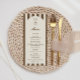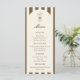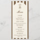 Birthday menu card featuring a hand-drawn coffee martini glass and coffee beans paired with elegant script and serif fonts in which your personalized information is written. The background is brown stripes on a light background. Check out our store for more items from this collection.