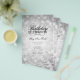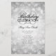 Design de "Programa de Festa de aniversário" elegante com flocos de neve de inverno e luzes em Prata com texto personalizado.
