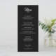 A clean minimalist wedding invitation design featuring elegant white style text on a deep black background. The layout is simple, modern, and focused on refined typography, making it suitable for contemporary weddings with a classic luxury aesthetic.