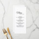 Esse simples cardápio de caligrafia branca e negra traz um luxo elegante, mas moderno, a um janto de recepções de casamento ou eventos minimalista e mais tradicional ou formal. A caligrafia casual permite um sentimento antigo, enquanto o design neutro de classe pode ser combinado com quaisquer aspectos únicos de sua celebração.