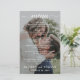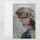 Menu de casamento de fotos minimalista com um simples design com a palavra "menu" em um elegante roteiro manuscrito com toques de branco e seus nomes em cima de sua foto favorita. Estes menus modernos e quentes de casamento são impressos em folhas de papel para uma opção econômica.
