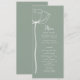 Este floral branco arrojado sobre um fundo verde sábio é um menu simples e moderno para o seu dia especial. Personalize todas as informações de janto ou almoço para seus convidados
