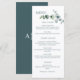 Este cartão de menu atemporal irá melhorar qualquer configuração de mesa. Este design apresenta um simples ramo de eucalipto. Forneça aos seus convidados todas as informações necessárias em uma fonte serif limpa. A parte de trás apresenta seu monograma contra um fundo verde em cor cheia.