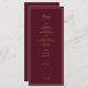 Escuro fundo de vinho de burgundy para design simples, mas elegante, baseado na tipografia. rodapé do monograma do casal. Goldenrod na matiz do vinho médio. Inverte para cor farinhenta. A placa de menu tem fontes variadas e o embelezamento da linha do solteiro em "Menu". Um olhar rico de cor, que funciona bem com estilos vitorianos a modernos.