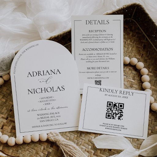 Menu de casamento clássico, em forma de arco simples, preto e branco, facilmente personalizável! Altere as cores da fonte, do plano de fundo e da fonte para se adequar ao seu estilo. Para qualquer ajuda, sinta-se à vontade para nos enviar mensagens via Zazzle. Itens correspondentes estão disponíveis