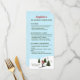 This menu card is perfect for a ski birthday weekend getaway. It features Destei's watercolor illustrations of women skiing across white snowy slopes with green fir trees under a light blue winter sky, with snow falling around them. Personalizable text areas let you add your own meal plans or details, making it a fun and festive addition to the celebration.