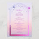 Sun Moon, Rosa Sol Mística Mística Estrelas Astronomia Galáxia Cósmica Celestial Cartões de Menu de Casamento Cards apresentam um sol rosa e roxo, lua e estrelas numa base solar de praia pastel com seus detalhes cardápios no centro em um roteiro de caligrafia roxa moderno. Personalize editando o texto nas caixas de texto fornecidas. Projetado para você pelo Evco Studio em www.zazzle.com/store/evcostudio