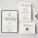 STATELY CALLIGRAPHY, black onyx and soft ecru, wedding menu. Features, elegant black calligraphy and serif typography and black onyx frame detail. Colors can be customized by using the design tool feature.