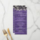 Cartão de cardápio de casamento russo com luzes de cordas bonito e nomes de estilo de assinatura, este cartão de cardápio na moda pode ser personalizado com suas informações em letras brancas chic em um fundo de painéis de madeira roxo. Projetado por Thisnotme©