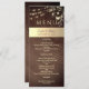 Traga calor e charme para a sua recepção com este elegante cartão de cardápio de madeira rústica, com delicados sotaques florais de ouro e luzes de cordas brilhantes. Perfeito para queda ou casamentos no inverno românticos, esta design adiciona um toque confortável, mas refinado, à sua capa de sopa. Personalize com suas seleções de menus e detalhes de casamento para criar uma experiência memorável de jantar que seus hóspedes irão amar.