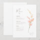 Esta suíte de casamentos chic com a paleta quente de cor ensolarada, letra escrita à mão e delicadas disposições de flor selvagem tem um eterno e um aspecto sofisticado que impressionará seus convidados e ajudará a tornar seu dia especial inesquecível. Este cardápio de casamento impressionante, mostrado aqui em branco com um arranjo de flor silvestre. fornece uma modelo para adicionar facilmente suas seleções de menus. Procure ID1023 para ver todos os produtos nesta suíte de casamento.