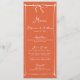 Preencha suas configurações de lugar com este menu romântico de casamento da Coleção Italiana do Sunset. Projetado com um fundo caloroso, uma borda branca esquisita e um arco elegante, este cartão mostra suas seleções de refeições em forma de eterno, na moda.