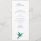 Um belo beija-flor colorida enfeite este adorável cardápio de casamento. A espiral de cinza macia dá-lhe uma sensação romântica com uma ligeira visão, mas moderna. Perfeito para uso diário, ou para ocasiões especiais como casamentos, chás de panela, noivados, aniversários, aniversários, festas de jardim e muito mais. Nota: O beija-flor pequeno na parte inferior frontal do menu pode ser removido para dar espaço a uma lista maior de itens do menu.