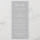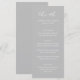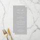 Menu de casamento moderno com um design tipográfico contemporâneo com "vamos coma" em tipografia elegante de script. Abaixo estão os detalhes de seu evento em seus nomes, data de casamento e menu em um layout simples e mínimo. O tema de cores é cinza de ardósias e pode ser alterado na ferramenta de edição de design.