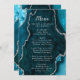 Menu Teal Blue and Silver Agate Marble Wedding