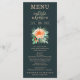 Elegante cor de água floral em tons de pêssego a laranja e lacre a folha verde de jade com os detalhes do menu de recepção de casamento em letras de pêssego chic com seus nomes e data de casamento no topo. Mude o fundo negro para qualquer cor para corresponder ao seu tema de casamento. COORDENANDO convites, cartões RSVP, cartões de recepção, obrigado a registrar e mais itens disponíveis em nossa loja para completar seu conjunto de convites.