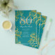 Design de "Programa de Festa de aniversário" elegante com Convênio Floral em Dourado com texto personalizado.